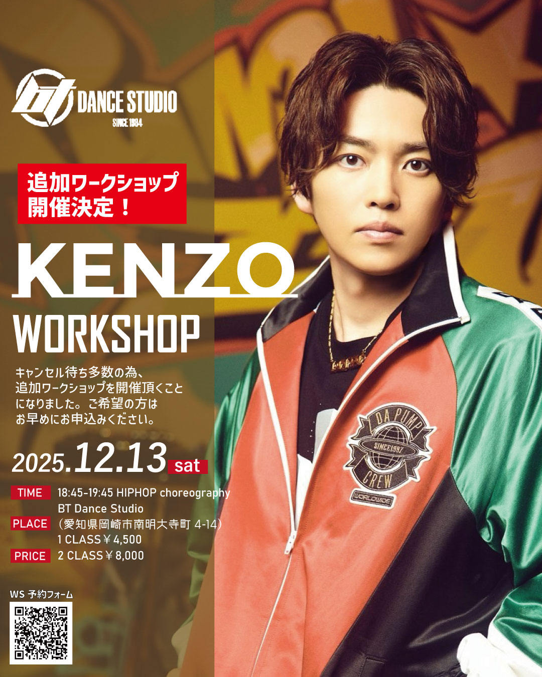 追加WS決定!12/13(土) 18:45~ KENZO / HIPHOP choreography