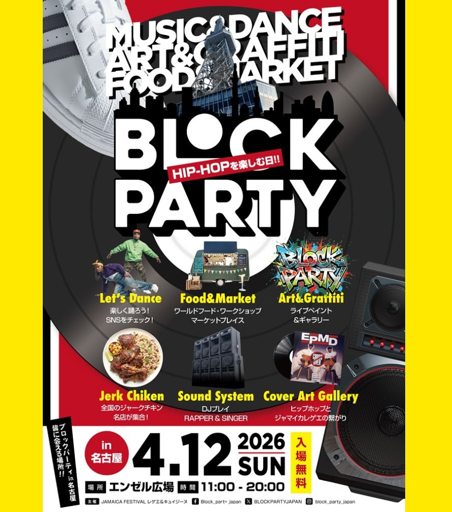 イベント名:「JAMAICA FESTIVAL」レゲエ&キュイジーヌ / BLOCK PARTY 名古屋 / LET’S DANCE 2026