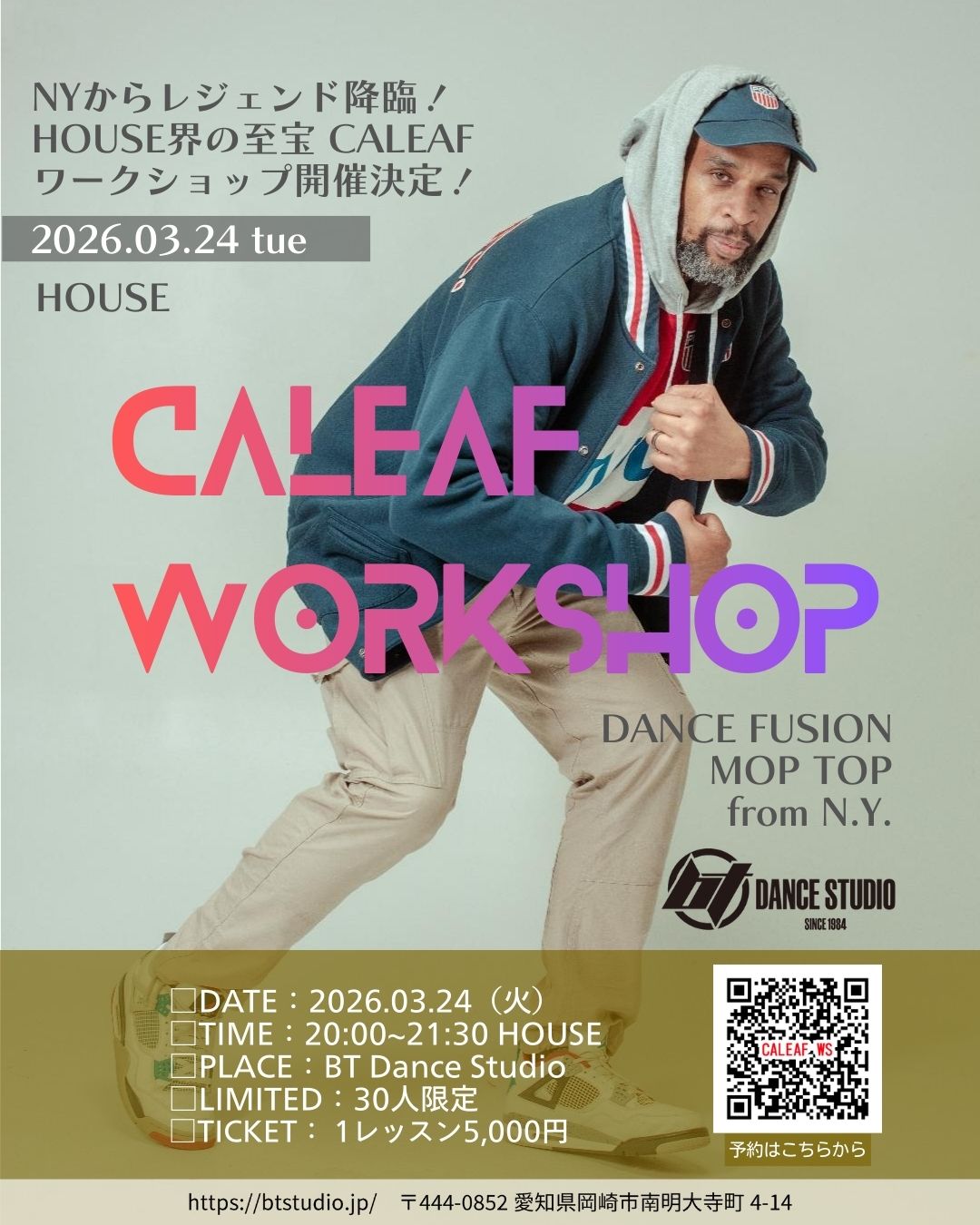 世界最高峰のハウスダンサー、CALEAFによるスペシャルワークショップをBT Dance Studioにて開催いたします。