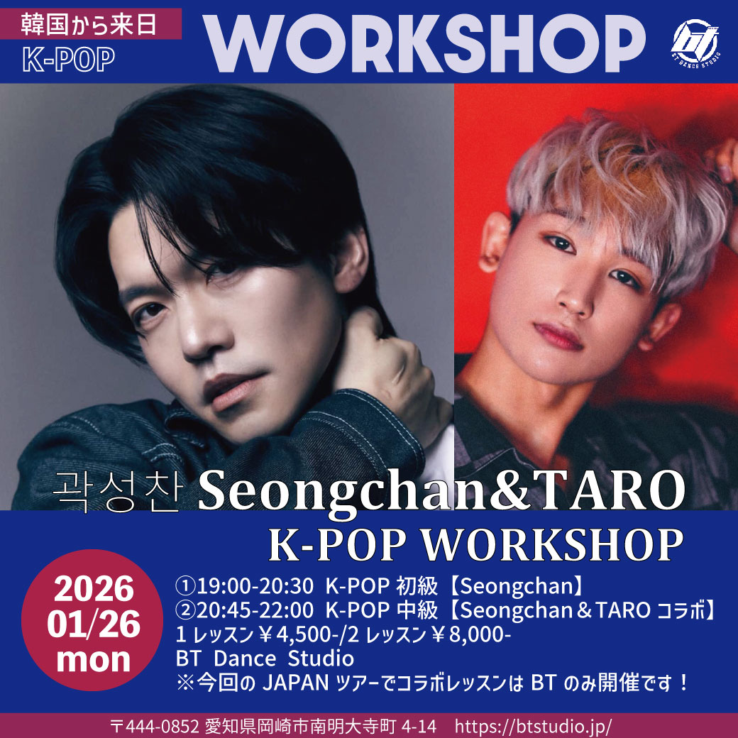 1/26(月)SPECIAL WORKSHOP/곽성찬 SEONG CHAN(ソンチャン)&TARO開催決定!